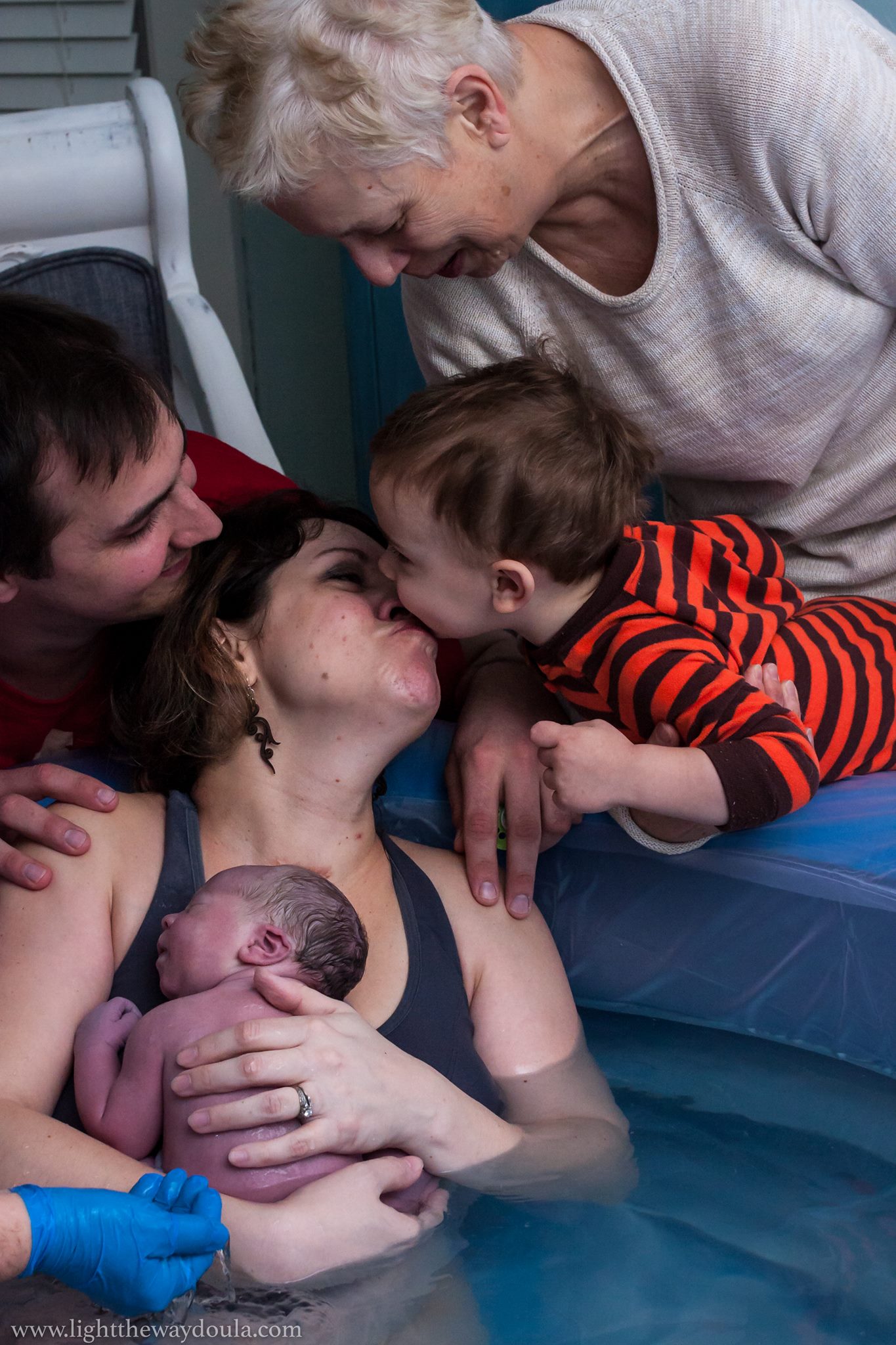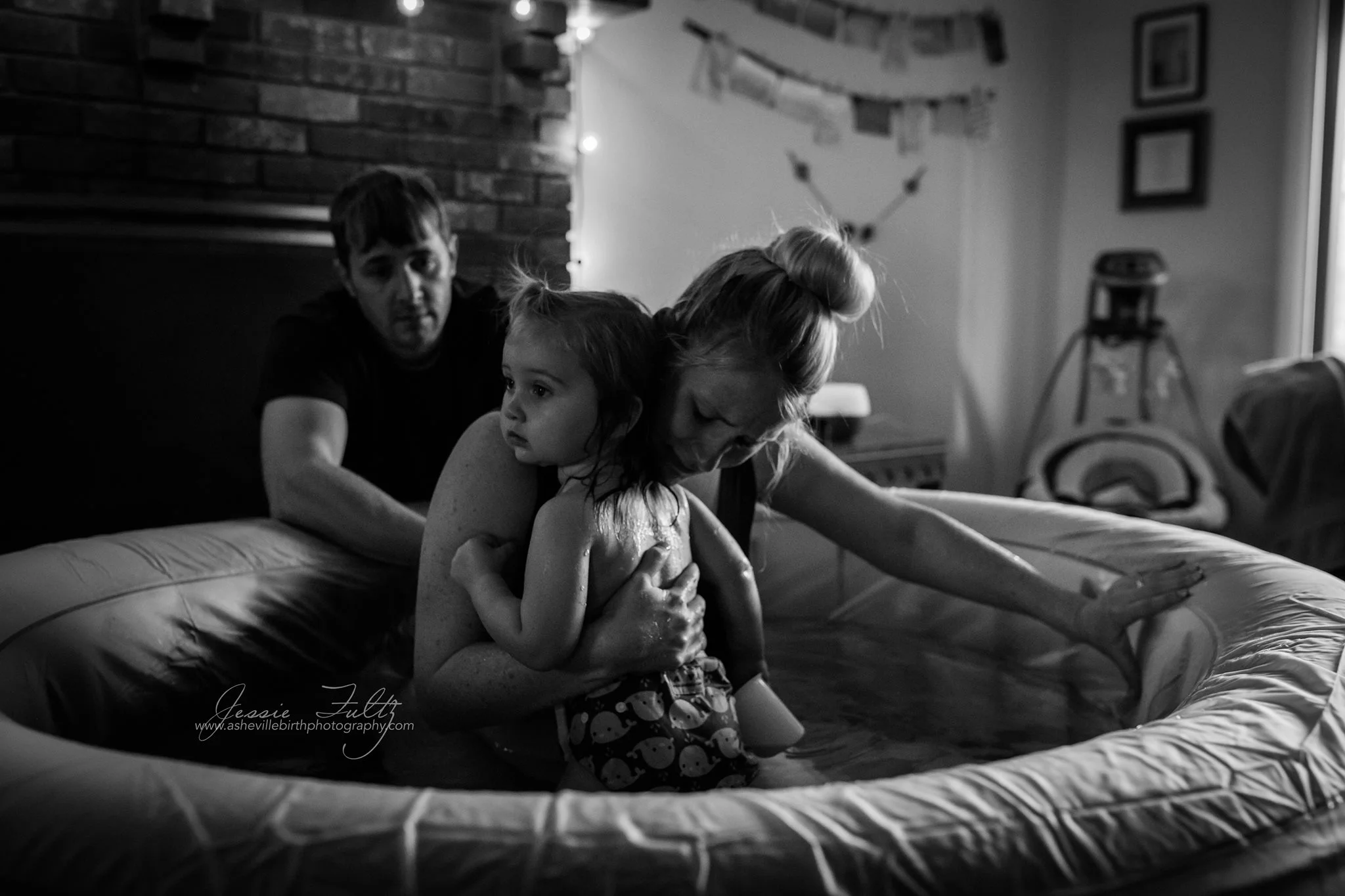 This big sister watched with pride as her mom birthed her baby brother into the world. Image by Monet Nicole – Birthing Stories.