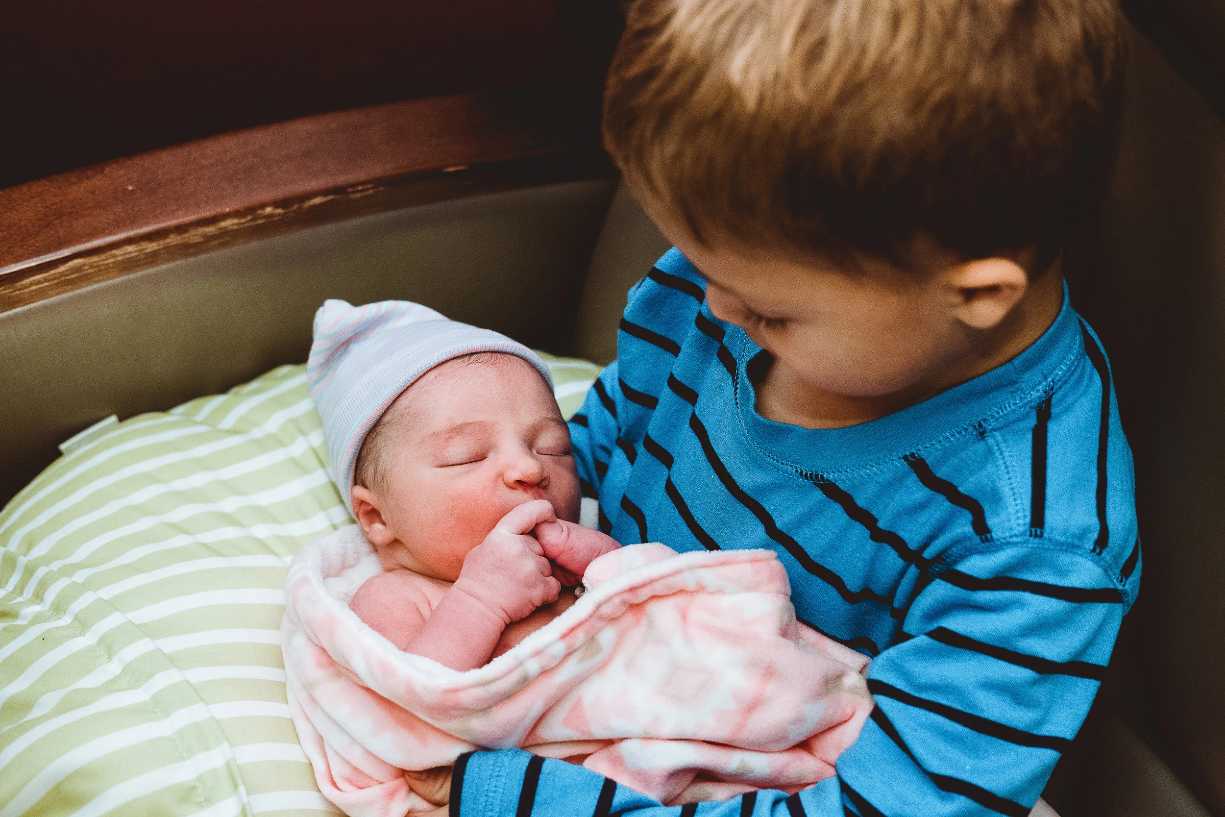 Big brother holds baby for the very first time. Image by Hilary Marie.
