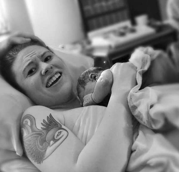“This photo was taken shortly after giving birth to my first son whose gender was a surprise. Not in the delivery room because we were blessed with a successful home birth (after two һoѕріtаɩ births). This was the strongest, most feminine I have ever felt in my life!”