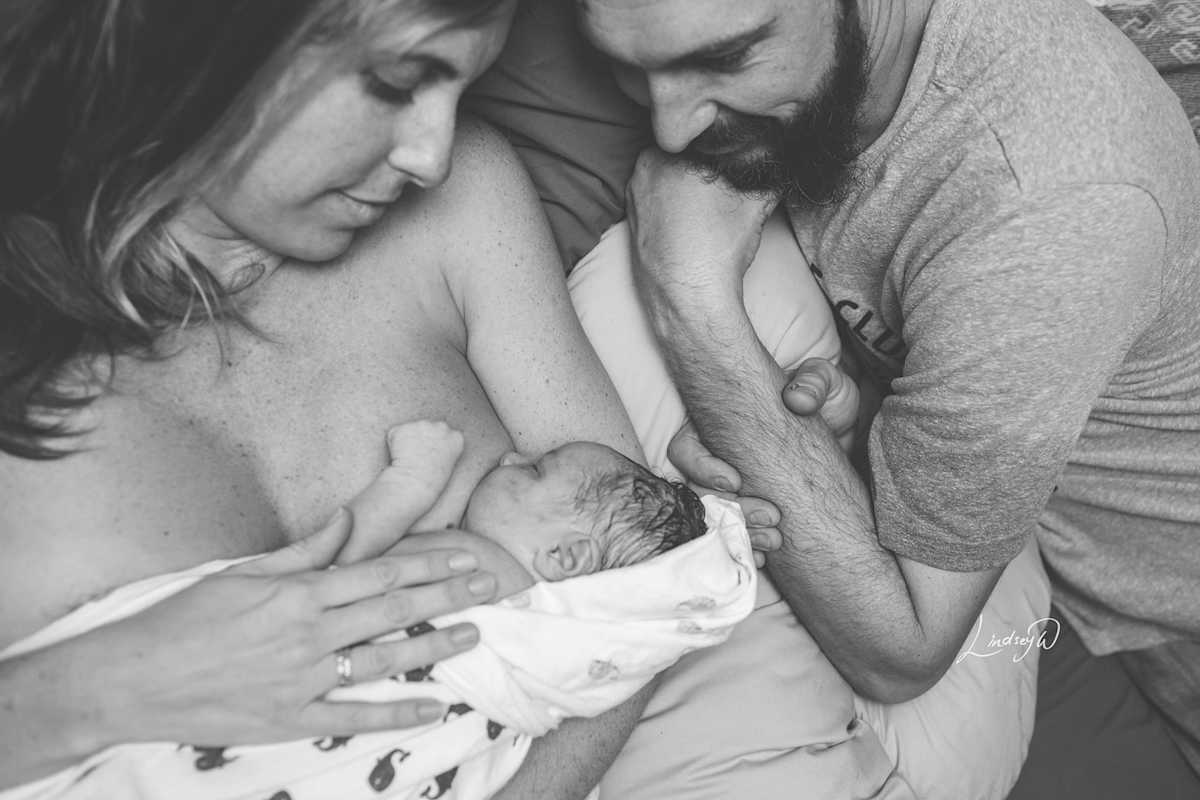 Abbey and her husband exchange smiles and a moment of gratitude Mom holds their sweet bundle of joy. Y’all did it!
