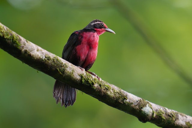 40 pictures of Rosy Thrush-Tanager: a distinctive bird with a long streak above the eyes, pink in front of the eyes and white behind