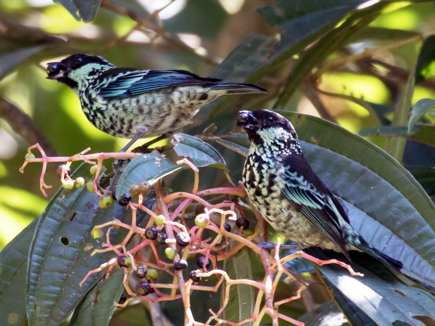 The Beryl-Spangled Tanager is particularly fond of the abundant and vibrant rainforests of the Amazon basin, where it finds an ideal habitat brimming with succulent fruits and delicious insects for its nourishment. Moreover, this colorful bird can also be spotted in secondary growth woods and plantations, further expanding its choice of dwellings.