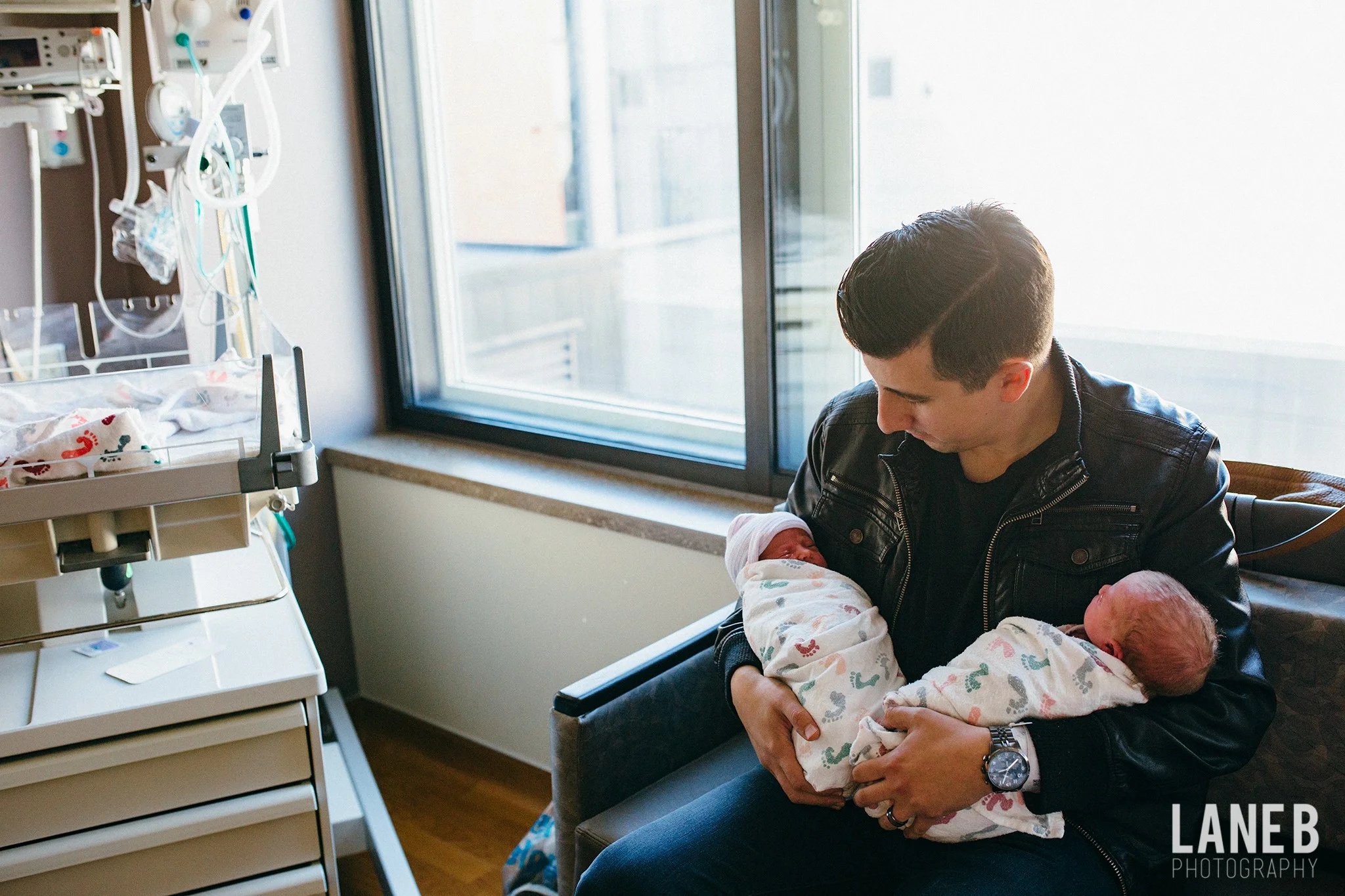 Dad holding his babies for the first time. Such a sweet photo by Lane B Photography.