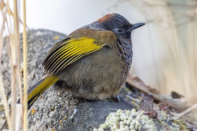 The Chestnut-crowned Laughingthrush is distributed from northern India and Nepal through the Himalayas to southern China. It is found in dense undergrowth and scrub bordering forest mainly at altitudes from 1,100 to 3,500 metres.