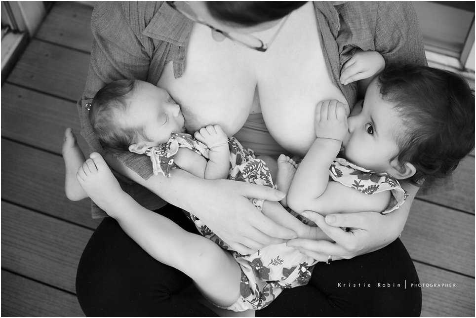 “This is my second set of nurslings in my six year (five years straight!) breastfeeding journey,” says this mom, photographed by Sabrena Rexing. “Nursing didn’t always come naturally and tandem nursing isn’t always fun. However, I feel like they are only little for a short time and tandem nursing is the easiest, most rewarding way to meet both of their needs.”