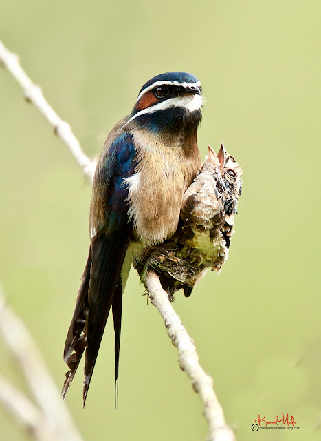 See the unique beauty of Treeswift mustaches (Hemiprocne comata) and how they protect their babies in the wild