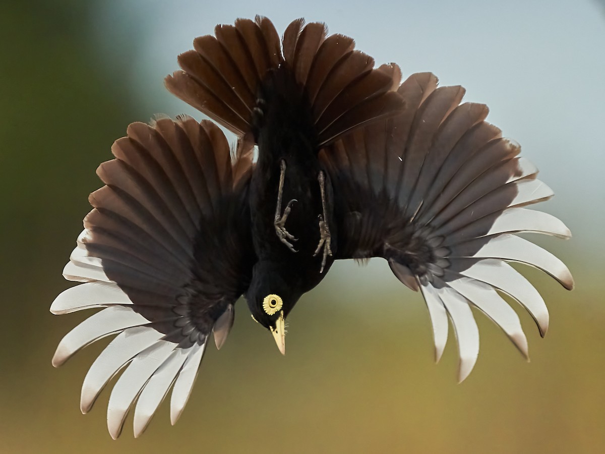 Identification & Behavior: ~16 cm (6.2 in). The male Spectacled Tyrant is black with a yellow bill, broad yellow orbital skin, white iris, and white primary fɩіɡһt feathers. The female is all brown and grayish streaked with black, and rufous fɩіɡһt feathers. The bill is mostly pale. It has a паггow orbital skin and pale iris.
